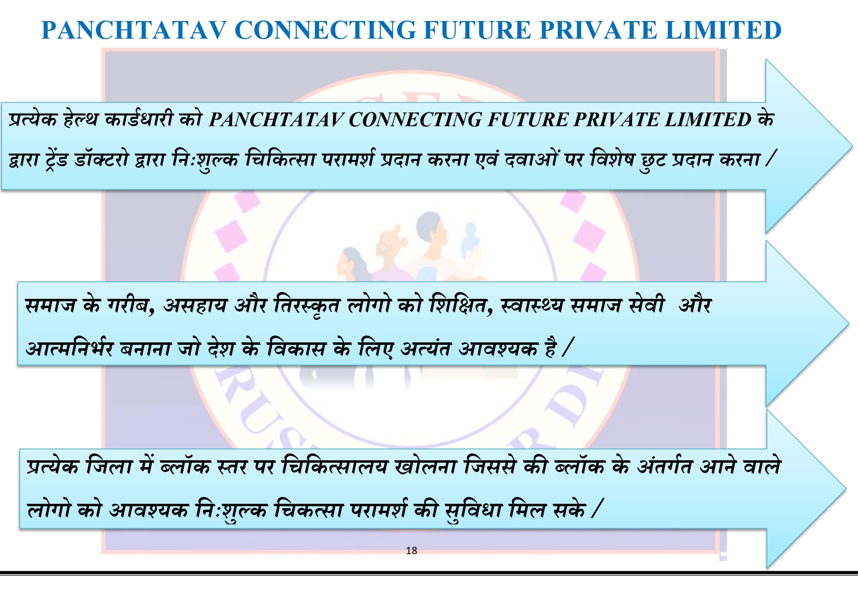 India is a country of villages. Even today more than 60% of the population of India lives in villages. It is known for its rural and tribal culture but it is also a sad fact that even today there is lack of health related facilities in villages. Our country will be healthy only when we are healthy. Hence it is important that people are made aware about health and education and the maximum use of available resources is ensured. PCFPL is always ready to serve you to solve all these problems.